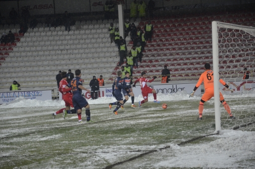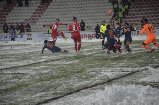 Müsabakanın ikinci yarısı yoğun kar yağışı eşliğinde start aldı.