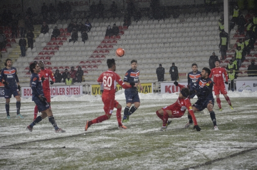 Kırmızı beyazlı ekip Boluspor, lig lideri Ankarapor’un sadece 4 puan gerisinde bulunan ve zirve mücadelesi veren İstanbul Büyükşehir Belediyespor’la sahasında karşılaştı. Boluspor eski Teknik Direktörü Cihat Arslan’ın yönettiği İstanbul B.B. ile Boluspor arasında oynanan müsabaka sahanın karlı olmasına rağmen kıran kırana bir mücadeleye sahne oldu.