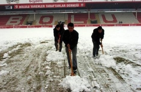 Yaklaşık 2 hafta önce aralıksız yağan yoğun kar sonucu saha zemininde yüksekliği 40 cm’ye ulaşan kar toplandı. Zeminde oluşan buzlanma da yoğun çalışmalar sonrası büyük ölçüde giderildi. Stad Sorumlusu Cahit Çokşirin gözetiminde yapılan saha temizleme çalışmasının, bugün maç saatine kadar bitirileceği belirtildi.