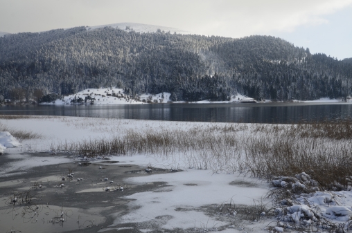 Yerli ve yabancı yüzlerce turisti kendine hayran bırakan Gölcük Tabiat Parkı buz tutan yüzeyi ile doyumsuz manzara oluşturuyor.