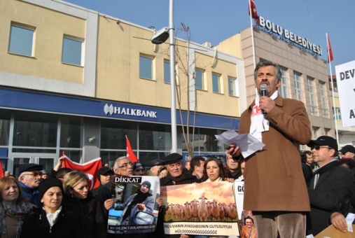 Hüseyin Yıkılmaz’ın ardından konuşma yapan CHP Bolu Milletvekili Tanju Özcan, “Yolsuzluklara karşı, ülkede yaşananlara karşı duyarsız kalmadığınız için çok teşekkür ederim. Birileri yıllarca şuna güvendi: ‘Biz ne yapsak yapalım, biz tüyü bitmemişin hakkını yesek bile bu insanımız nasıl olsa duyarsızdır, nasıl olsa unutur’ dediler. Ve bu güvenle bu ülkeyi soymaya devam ettiler. Ama bugün görüyoruz ki Türkiye’nin her yerinde benzer tepkiler var. Vatandaşımız şunu söylüyor; ‘Ey Tayyip Erdoğan! Sen bizim dualarımızla iktidara geldin ama artık bundan sonra sen bizim beddualarımızla iktidardan ineceksin.’ Bazıları televizyonlara çıkıp gülerek bir şeyler anlatıyor. Ağlanacak halimize gülüyoruz. Dünyanın hiçbir yerinde bir Hükümetin dört bakanıyla ilgili rüşvet iddiası olmamış. Dört bakanın aileleri ve çocuklarıyla ilgili kara para aklama iddiası olmamış. Bazı Bakanlarla ilgili öyle korkunç iddialar var ki; Türkiye Cumhuriyeti vatandaşlığını bile para karşılığı satmışlar. Artık bundan daha kötü ne olabilir? Biz bugüne kadar kimlere destek verdik, kimlerin bu ülkeyi yönetmesine izin verdik bu noktaya dikkat çekmek istiyorum. Her ne kadar şu anda oğlu içerde olan, ama kendisi görevinin başında kalmakta ısrar eden İçişleri Bakanı, kendi polisine baskı uygulayarak, Emniyet Müdürlüğü’ne vatandaşın ve gazetecilerin girmesini engelleyerek, Hükümet kendisine yakın medyayla bu işin aslı astarı yoktur yerine ‘bize tuzak kurdular’ diye konuyu başka şekilde çarpıtmaya çalışsalar da, vatandaşımız bugün her şeyin farkında olduğunu bir kaz daha göstermiştir” diye konuştu.
