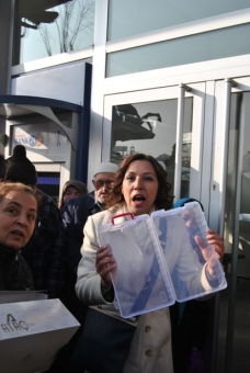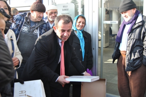 Konuşmaların ardından eyleme katılanlar banka önüne ayakkabı kutusu bıraktılar. CHP Bolu Belediye Başkan Adayı Mehtap Mısırlıoğlu banka önüne şeffaf bir kutu koyarak, “Biz göreve geldiğimizde her şey işte bu kutu gibi şeffaf şekilde olacak. Gizli kapaklı hiçbir şey olmayacak” dedi.
