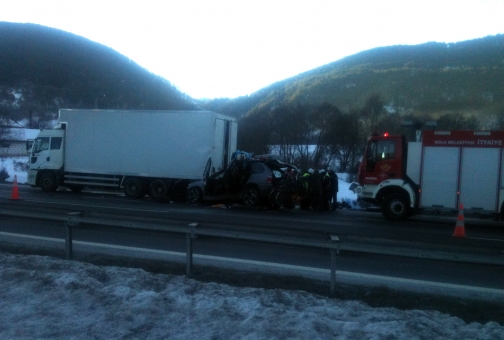 Bolu Belediyesi İtfaiye Müdürlüğü’ne bağlı kaza kırım ekibi, savcının incelemesinden sonra cesetleri araçtan çıkardı. Sürücü ve yanındaki eşinin emniyet kemerlerinin takılı olduğu görülürken, kaza sonrası hız ibresi 110 kilometrede takılı kaldı. TIR sürücüsü İlhan Fındıkoğlu gözaltına alınırken, kazayla ilgili inceleme başlatıldı.