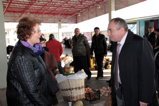 Ak Parti Belediye Başkan Adayı Alaaddin Yılmaz beraberinde Ak Parti Kadın Kolları Başkanı Arzu Aydın, belediye meclis üyeleri ve parti teşkilat üyeleri ile birlikte Kalıcı konutlardaki semt pazarına giderek pazarcı esnafı ve alışverişe gelen vatandaşlarla sohbet ederek ustalık dönemi için destek istedi.