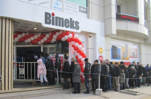 ‘Teknolojinin kalbi burada atıyor’ sloganı ile çalışmalarını sürdüren Bimeks, 2015 yılı sonuna kadar Türkiye’nin 81 ilinde 150 mağazaya ulaşmayı hedefliyor. Tabelalarını değiştirdiği mağazalarda açılışa özel indirim fırsatları sunan Bimeks, iPhone 4, LG televizyon, Grundig A+ buzdolabı, Apple iPad mini ve Samsung çamaşır makinesi gibi tüketicilerin ilgisini çekecek birçok üründe çeşitli avantajlar sundu. Bolulu vatandaşlar, açılışa özel indirimli ürünleri alabilmek için kuyruğa girdi.