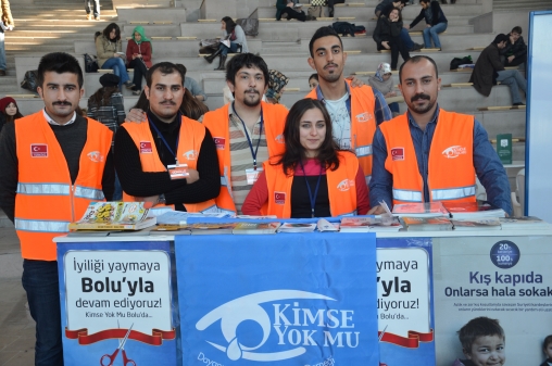 Televizyon programı ile başlayıp dünyanın dört bir yanına gönül köprüsü kurmayı başaran Kimse Yok Mu Derneği; gerçekleştirdiği yardım faaliyetleri ile üniversiteli öğrencilerin dikkatini çekiyor. Abant İzzet Baysal Üniversitesi Türkçe Eğitimi Bölümü Öğrencileri, “Topluma Hizmet Dersi Uygulamaları” çerçevesinde Kimse Yok Mu Derneği gönüllüsü oldu. İlk önce ders için geldikleri kurumun faaliyetlerinden etkilenen öğrenciler, gerekli işlemleri tamamladıktan sonra kurumun aktif gönüllüsü olarak çalışmayı kararlaştırdı. Bu kapsamda elini taşın altına koyan öğrenciler ,köylere dağıtılacak yardım malzemelerini düzenliyor. Gerçek ihtiyaç sahiplerini belirlemek için yardım talebinde bulunan ailelerin sosyal incelemelerini yapıyor.