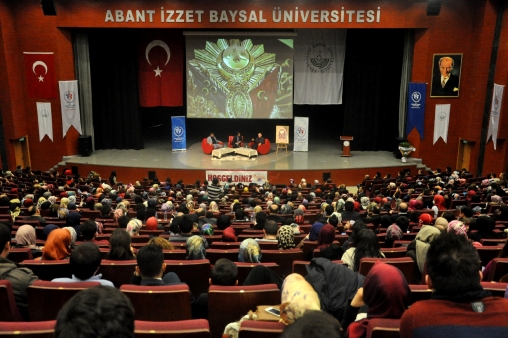 AİBÜ Üniversiteli Akil Öğrenciler Topluluğu (ÜNİAK) tarafından Kongre Merkezinde gerçekleştirilen ‘Fethin Fatihi Fatih Sultan Mehmet Han’ konulu söyleşide, ünlü Sultanın tahta çıkışı, İstanbul’un fethi ve fethin perde arkası, Fatih’in hayatında Akşemseddin’in önemi gibi pek çok konu ele alındı.