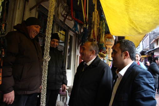 Yukarı Çarşı’da seçim çalışmalarına devam eden Başkan Yılmaz’a destek olmak için Ak Parti Belediye Başkan aday adayları Mücahit Kutlu ve Tahsin Akduman’da hazır bulundu. Başkan Yılmaz'ı dükkanlarının önünde karşılayan esnaf, Kültür Park ve yaya tüneli projesinin Yukarı Çarşı’ya hareketlilik kazandıracağını belirterek çalışmalarından dolayı Başkan Yılmaz’a teşekkür etti.