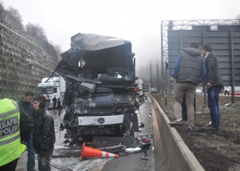Edinilen bilgiye göre kaza, sabah saat 07:30’da TEM Otoyolu’nun Bolu Dağı Tüneli’nin İstanbul istikameti çıkışında meydana geldi. Yoğun sis ve kayganlaşan zemin nedeniyle 06 DU 4284 plakalı otomobil sürücüsünün direksiyon hakimiyetini kaybetmesiyle bariyerlere çarptı, arkadan gelen 27 R 405 plakalı otobüs de otomobile çarptı. Kaza sonrası gelen karayolları ekipleri yolda güvenliği sağlarken, 84 A 39110 İran plakalı TIR kayganlaşan zeminde duramayarak karayolları aracına çarptı. İkinci kazanın ardından 63 L 0362 plakalı TIR, 14 DG 101 plakalı kamyon, 78 BD 626 plakalı otobüs, 61 SE 567 plakalı kamyonet ve 37 SN 816 kamyonet arka arkaya çarpıştı. Kaza yerine Düzce ve Bolu’dan onlarca ambulans sevk edildi. Kazada Ganime Okumuş ile kimlikleri belirlenemeyen 2 kişi hayatını kaybederken, 26 kişi de yaralandı. Otobüste sıkışan bir kişi 112 ve itfaiye ekipleri tarafından sedyeyle indirildi.