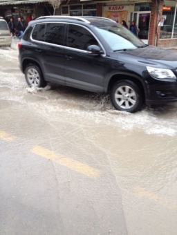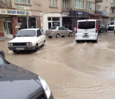 Gölyüzü Mahallesi’nde bulunan su şebekesinde patlama meydan geldi. Su hattından akan su caddeyi bastı. Tahvil Mehmet Paşa Caddesi tamamen sular altında kalırken, araçlar suyun içinden güçlükle ilerliyor. Esnaf ise suyun dükkanlara girmesin diye yoğun gayret sarfediyor.