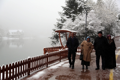 Ailesiyle İstanbul'dan gelen Ümit Yardımcı, yaptığı açıklamada, Abant'a kar yağdığını duyunca yola çıktıklarını belirterek, "Uzun zamandır kar yağışı olmadığı için bunu görmek amacıyla geldik. Kar yağışının altında tatil yapmak çok güzel oluyor. Ailecek Abant'ta eğlendik" diye konuştu.