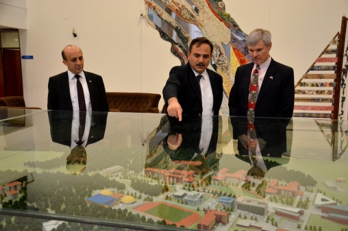 ABD İstanbul Başkonsolosu Charles F. Hunter’ın Üniversitemizi ziyaret etmesinden dolayı duyduğu memnuniyeti dile getiren Rektör Coşkun, Hunter’a üzerinde Abant İzzet Baysal Üniversitesi’nin logosunun olduğu çini bir tabak hediye etti. Hunter da Coşkun’a kitap armağan etti.