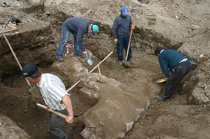 Geçtiğimiz aylarda yıkımı gerçekleştirilen Eski Belediye Dükkanları?nın bulunduğu bölgede Anıtlar Yüksek Kurulu izniyle 4 arkeolog tarafından tarihi eser kazıları yapılmaya başlandı.