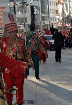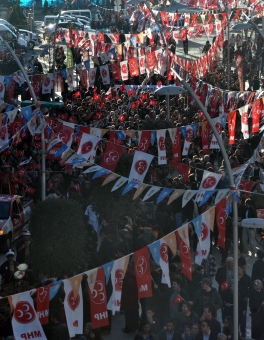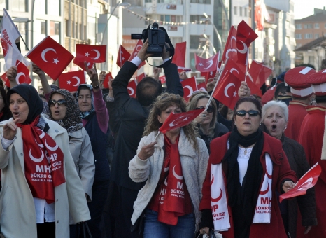 Bankalar önünde mehter takımı eşliğinde marşlar çalan MHP’liler, daha sonra İstiklal Marşı’nı okuyarak olaysız şekilde dağıldı. MHP Teşkilatı, akşam düzenlenen Şahlanış Gecesi’nde Ahmet Şafak ve Atilla Yılmaz konserleriyle bir araya geldi.