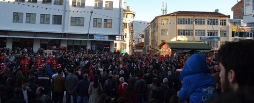 Kent Meydanı’ndan Belediye önüne dek gerçekleştirilen Şahlanış Yürüyüşü’nün ardından ülkücü camia 17 Temmuz Kapalı Spor Salonunda düzenlenen Şahlanış Gecesine katıldı. Milliyetçi Hareket Partisi Belediye Başkan Adayı Şükrü Gülez, İl Başkanı Mehmet Aydın ve diğer partili yöneticileri ile Bolu Ülkü Ocakları Başkanı Kenan Çevik önderliğinde düzenlenen Şahlanış Gecesi’ne yüzlerce kişi katıldı. Gece Bolu Ülkü Ocakları Başkanı Kenan Çevik’in Kur-an’ı Kerim tilaveti ve konuşmasıyla başladı. Çevik yaptığı konuşmada, gecede emeği geçen tüm ülküdaşlarına teşekkür etti. Ülkücülerin hiçbir oyuna alet olmayacağını dile belirten Çevik, yetişmiş ülkücü kadrolar var olduğu sürece bu topraklar üzerinde hesabı olanların hesaplarını bozacaklarını söyledi.