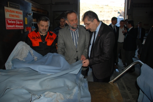 Yaptığı gezide Deri Organize Sanayi Yönetim Kurulu Üyesi Ali Sağol’dan tabakhane ile ilgili bilgiler alan Vali Zahteroğulları, ziyaretinde tezgahlarda çalışan işçilerin de yanına giderek onlarla sohbet etti, sorumlu oldukları tezgahlarda yaptıkları işleri sordu.
