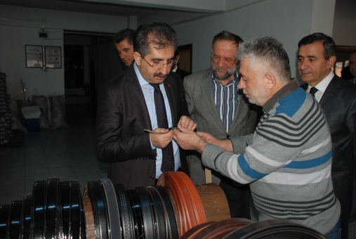 Vali Zahteroğulları, tabakhane ziyaretinin ardından ise kemer imalatı yapan atölyeleri de gezdi. Atölyeleri ziyaretlerde firma yetkililerinden bilgiler alırken, bir kemerin yapılış aşamalarını da izledi.