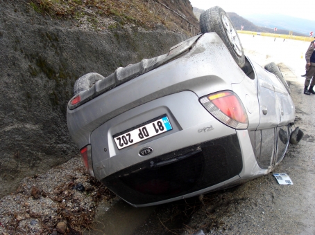 Mehmet Alkan (28) idaresindeki 81 DP 202 plakalı otomobil, Bolu Dağı D-100 Karayolu İstanbul yönü Bakacak mevkisinde ters dönerek yol kenarındaki menfeze düştü.