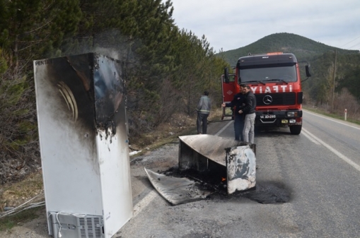Bolu’da Mudurnu Yolu üzerinde Mudurnu istikametine seyir halinde bulunan Seyfi Acar yönetimindeki 14 EU 425 plakalı kamyonetin kasasında bulunan beyaz eşyalar, Gövem mevkiinde yanmaya başladı. Sürücü alevleri fark edip kenara çekti. Yanan beyaz eşyaları söndürmeye çalışan sürücü başarılı olamayınca itfaiye ekiplerinden yardım istedi. Mudurnu yolu üzerinde meydana gelen olayda beyaz eşyalardan çıkan kıvılcımlar ormanlık alana sıçradı. Kısa sürede olay yerine gelen Bolu Belediyesi İtfaiye Ekipleri alevlere müdahale etti. İlk belirlemelere göre yangının sigara izmaritinden çıktığı öğrenildi.