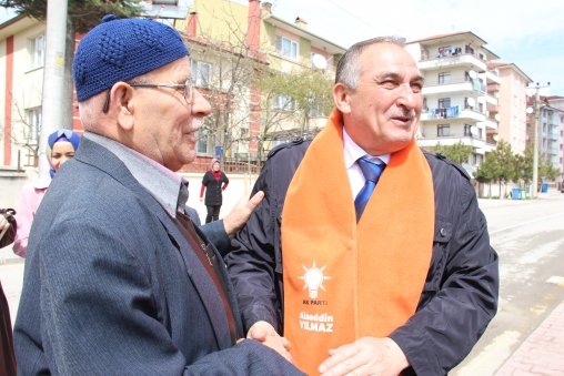 AK Parti teşkilatı beş grup halinde 30 Mart seçimlerine kadar çalmadık kapı bırakmamak için Belediye Meclis Üyeleri ve AK Parti Kadın Kolları ile Köroğlu Mahallesi’nde seçim çalışmalarına devam etti. Küpçü, 30 Mart seçimlerine üç gün kala AK Parti Belediye Başkan Adayı Alaaddin Yılmaz’a ve AK Partiye destek istedi. Fehmi Küpçü; “Seçim havası çok güzel insanlarımız hem başbakanımızın hem de Alaaddin beyin Bolu’da şehir kimliği noktasında yaptığı çalışmaları beğeniyor. Vatandaşlarımız AK Parti hizmetlerinden son derece memnun olduğunu ifade ediyor. Başbakanımız Recep Tayyip Erdoğan miting alanlarında söylüyor; ‘Bütün derdimiz şehir ve insan.’ Şehir ve insan odaklı siyaset yapıyoruz. Bugün ekibimizle birlikte milletimizin duasını almak için yollardayız. Ak Parti döneminde yapılan kültür park ve karaçayır parkı ile yaşanabilir bir çevre noktasında Bolu büyük bir ivme kazandı. Halkımızda yapılan projelerimizden son derece memnun. Bolu’nun karakterli şehir olma noktasında emek ve katkı vermeyenler bugün farklı şeyler söyleyebilirler. Ak Parti yerel yönetimleri 10 yıllık hizmet süresince başbakanımızla beraber hizmet ve insan merkezli yoluna devam ediyor. Biz ulaşabildiğimiz kadar vatandaşlarımıza ulaşmaya çalışacağız ulaşamadıklarım ne olur kusura bakmasın bizim gönlümüz halkımızla.30 Mart’tan sonra Bolu’nun marka şehir olma noktasında yapılacak devasa projelere karşı çıkanlara sandıkta millet cevap verecektir” diye konuştu.