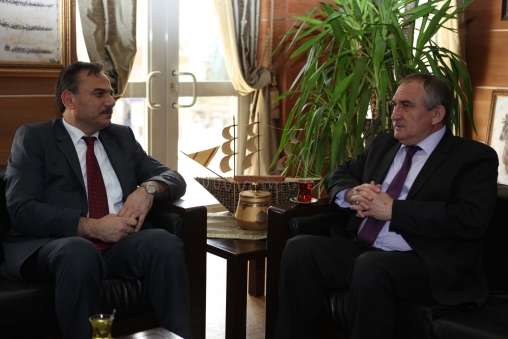 Bolu halkının teveccühüyle 3’üncü dönem Belediye Başkanı seçilen Alaaddin Yılmaz’ı AİBÜ rektörü makamında ziyaret ederek görevinde başarılar diledi. Coşkun, “Yerel seçimlerde elde ettiği başarıdan dolayı başkanımız tebrik ediyorum.10 yıldır Bolu’da görev yapıyorum. Başkanımız tarafından Bolu’da 10 yıldır çok güzel hizmetler yapıldı. Bolu’ya yeni terminal, tıbbi atık tesisi ve temiz ve pis su arıtma tesisleri başkanımız tarafından kazandırılmıştır. Başkanımızın bu topraklara hizmet ettiğine hep şahit olduk, yeni dönemde de Bolu’ya çok güzel hizmetleri olacağına inanıyorum. Başkanımızı seçimde elde ettiği başarı ve hizmetleri dolayısıyla tebrik ediyorum. Çalışmalarında başarılar diliyorum” dedi.
