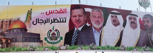 Ömer el-Muhtar Caddesi'nde asılan ve "Kudüs Yiğitlerini Bekliyor" yazılı afişte, Başbakan Erdoğan'ın resminin yanı sıra Gazze'deki Filistin Hükümeti Başbakanı İsmail Heniye, Hamas'ın Siyasi Büro Şefi Halid Meşal, Katar Emiri Temim bin Hamad Al Sani ve eski Katar Emiri Şeyh Hamad bin Halife Al Sani'nin resimleri yer aldı.