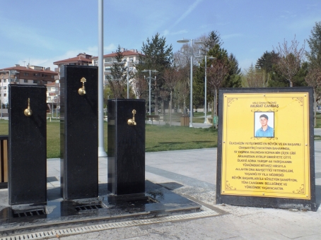 19 yaşında hayatını kaybeden Milli şampiyon Murat Canbaş’ın adı Bolu Belediyesi tarafından yaptırılan çeşme ile bir kez daha ölümsüzleştirildi. Madalya kürsüsü şeklinde yaptırılan çeşmenin hemen yanında Canbaş’ın fotoğrafının da yer aldığı bir anıt yerleştirildi. Yaptırılan bu anlamlı eserde, “Ülkemizin yetiştirdiği en büyük ve en başarılı cimnastikçi hayatının baharında, 19 yaşında dalından kopan bir çiçek gibi aramızdan ayrılıp ebediyete gitti. Ülkesi adına yarışıp, 46 yarışmanın tümündeki bitmez hırsıyla Allah’ın ona bahşettiği yetenekleri, yaşadığı 19 yıla sığdırdığı büyük başarıları ile süsleyen şampiyon, tüm camianın yüreğinde yaşayacaktır” ifadelerine yer verildi.