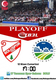 TB3L'de Playoff turu başlıyor. Boluspor'un 1. turdaki rakibi Sakarya BŞB. 3 Maç üzerinden oynanacak bu turda 1. maç Bolu'da, 2. ve 3. maç Sakarya'da oynanacak. Kırmızı-beyazlı temsilcimiz Play-Off turu ilk maçında 17 Temmuz Spor Salonu’nda 12 Nisan Cumartesi günü saat 17.00’de Sakarya Büyükşehir Belediyespor’u konuk edecek.