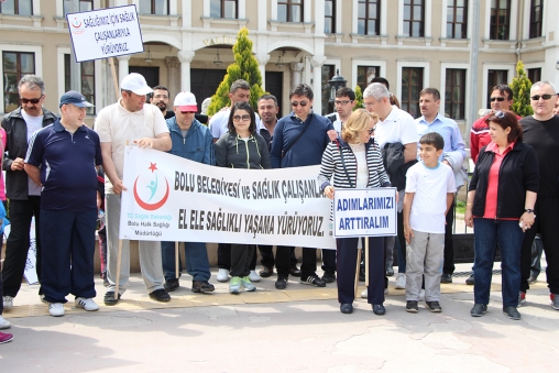 Hükümet Caddesi'nde toplanan Bolu Belediyesi ve İlçe Halk Sağlığı Müdürlüğü çalışanları, ellerindeki pankartlarla Atatürk Orman Parkı'na kadar yürüdü.