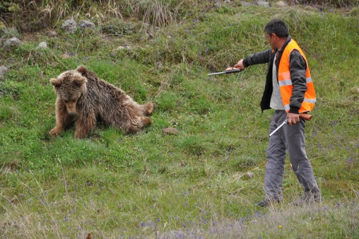 Bunun üzerine uyuşturucu iğneyle bayıltılan yaklaşık 130 kilogramlık 1,5 yaşındaki bozayı, daha sonra brandaya konularak, Orman ve Su İşleri İl Müdürlüğüne ait bir araca taşındı.
