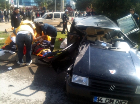 İzzet Arıkan idaresindeki 14 DM 057 plakalı otomobil, sanayi istikametinden Uğur Mumcu Parkı istikametine geçmek isterken kırmızı ışık ihlali yaptı. Kırmızı ışıkta geçen otomobile, İstanbul’dan Ankara istikametine giden Zeynel Ökmen idaresindeki 14 DA 822 plakalı kango tipi araç çarptı. Çarpışmanın etkisiyle iki araç ters istikamete dönerken, yaralılar orta refüje fırladı. 112 Acil Servis ekipleri, ilk olarak sürücü İzzet Arıkan’ı ambulansla hastaneye kaldırdı. Yaralı olarak orta refüjde bekleyen Saniye D. ise bir süre olay yerinde tedavi edildikten sonra ambulansla İzzet Baysal Devlet Hastanesi Köroğlu Ünitesi’ne kaldırıldı. Diğer aracın sürücüsü Zeynel Ökmen kazayı hafif sıyrıkla atlattı.