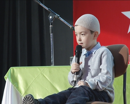 Erkek öğrenciler yarışmayı tamamladıktan sonra 6 yaşındaki Muhammed Metin Dicleli de Kur’an Kerim okuyarak dinleyenlerden büyük alkış aldı.