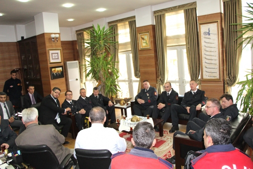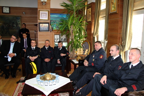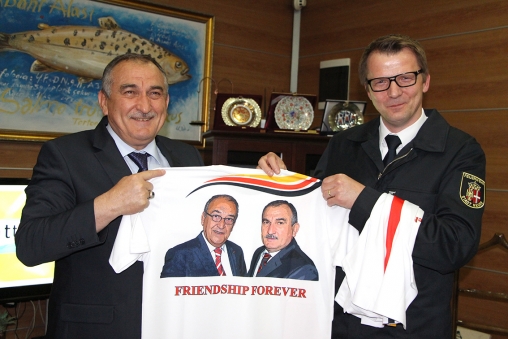 Dost Neus kentinden çeşitli incelemelerde bulunmak üzere Almanya’dan Bolu’ya gelen Neuss Belediyesi İtfaiye Müdürü joahıun Elbınger ve beraberindeki itfaiye erlerini Belediye Başkanı Alaaddin Yılmaz makamında ağırladı. Neus İtafaiye ekibi Bolu’da olmaktan büyük mutluluk duyduklarını belirterek; Kendilerini çok güzel bir şekilde ağırladıkları için Bolu Belediyesi’ne teşekkür ettiler. Belediye Başkanı Alaaddin Yılmaz’da kardeş belediye personelini ağırlamaktan onur duyduklarını söyledi.Başkan Yılmaz açıklamasının devamında Bolu Belediyesi İtfaiye Müdürlüğü’nün Türkiye’de çok güçlü bir konumda olduğunu belirterek; “ Bolu Belediyesi İtfaiyesi araç gereç ve bilgi bakımından güçlü bir konumda, karşılıklı başlayan bu diyaloglar ve eğitimlerle iki teşkilatın ciddi kazanımları olacaktır” dedi. Başkan Yılmaz Neus Belediyesi itfaiye erlerinin isimlerinin yazılı olduğu ‘Kardeş belediyeciler ve ebedi dostluk’ tişörtlerini Neuss’lu itfaiye erlerine hediye etti. Başkan Yılmaz, kendi resminin ve Neus Belediye Başkanı Herbert Napp’ın resminin olduğu tişörtü de Neuss’lu itfaiye erlerinden Başkan Napp’a hediye yolladı. İtfaiye erleri anlamlı hediye için Başkan Yılmaz’a teşekkür ederek; “Alman ve Türk Milli takımları dünya kupasında karşı karşıya gelirse söz bu dostluk formalarını giyeceğiz” dediler.