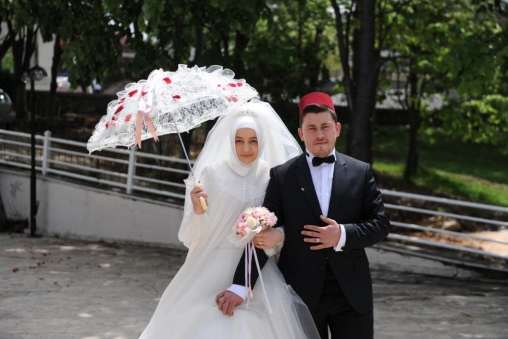 Nikahın ardından evlilik cüzdanını geline veren Korkmaz, "Abdülhamid oğlum sayılır; ancak bu kutsal emaneti kızımız Hatice Kübra'ya veriyorum" dedi.