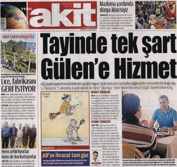 Yeni Akit Gazetesi’nin “Tayin’de tek şart Gülen’e hizmet” başlıklı manşeti Bolu ve ülke kamuoyu gündemine bomba gibi düştü. Haberde, Aile ve Sosyal Politikalar Bakanlığı bünyesinde çalışan İ.D. isimli bürokratın, geçtiğimiz Şubat ayında bakanlık müsteşarlığı görevinden alınarak Bolu Valiliği’ne atanan Ahmet Zahteroğulları hakkındaki iddialarına yer verildi.