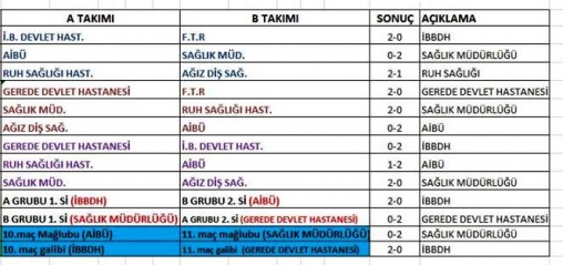 Tamamlanan turnuva sonrası açıklama yapan Hemşirelik Komitesi 1.2. ve 3.olan takımların bu akşam saat 18.30’da Highway Outlet AVM’de, bowling ve masa tenisi final maçlarının ardından düzenlenecek törenle ödüllerini alacağını duyurdu.