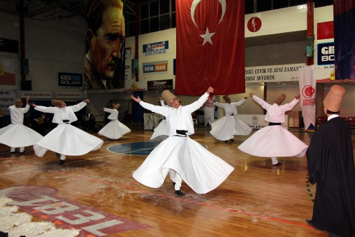 Programda Tasavvuf müziği eşliğinde sahneye çıkarak gösterilerini ustalıkla sergileyen semazenler programın sonunda izleyicilerden büyük alkış aldılar.