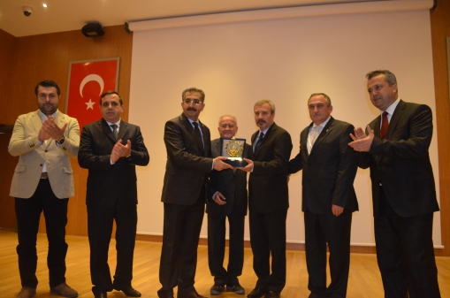 Vali Ahmet Zahteroğulları, Belediye Başkanı Alaaddin Yılmaz, Rektör Vekili Prof.Dr. Mehmet Bahar, İzzet Baysal Vakfı Başkanı Ahmet Baysal, TSO Yönetim Kurulu Başkanı Türker Ateş, Meclis Başkanı Gökhan Yaman, Meclis ve Yönetim Kurulu Üyeleri, İzzet Baysal Vakfı Mütevelli Heyeti Üyeleri, Kent Konseyi Başkan ve üyelerinin katılımıyla Ticaret ve Sanayi Odası’nda gerçekleştirildi. Şerafettin Erbayram’ın rahatsızlığı nedeniyle katılamadığı törende açılış konuşmasını yapan TSO Başkanı Türker Ateş, “9. İzzet Baysal Sosyal Sorumluluk Ödülü’nün sahibi, Mütevelli Heyet Üyesi kimliğiyle İzzet Baysal Vakfı’mızın çalışmalarına sürekli katkılar sağlayan, 40 yılı aşkın süredir devam eden ticari hayatında benimsediği sürekli yenilikçilik anlayışı ve vizyonuyla, İlimizin sektörel gelişimi için her dönemde önemli çalışmalar ortaya koyan, tek uğraşı, memleketi Bolu’nun bulunduğu yerden daha ileriye gitmesine destek vermek olan, 2006 yılında, İlimizde sivil toplum örgütü yelpazesinde 32 iş insanının bir araya gelmesiyle yepyeni bir vakıf modelinin hayata geçirilmesine ön ayak olan, bu çatı altında Bolu’nun yaşam kalitesini yükseltmeyi ve yaşanabilir kent olgusuna ulaştırmayı temel amaç edinen çalışma ve projelere destek veren, fikirlerine her zaman başvurduğumuz değerli büyüğümüz sanayici ve işadamı Sayın Şerafettin Erbayram’dır. Kendisini tebrik ediyoruz.” şeklinde konuştu.