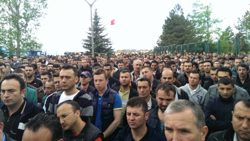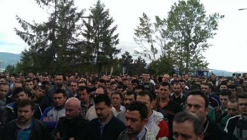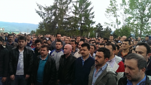 Türk Metal Sendikası Bolu Şube Başkanı Özgür Elçi, Pişirici Cihazlar İşletmesi önünde üye çalışanlara basın açıklaması yaptı. Elçi, “Üreten insanlara ürettikleri kadar değer verilsin. Artık cinayet zamanı değil, hayat zamanı. İş kazalarında Türkiye’nin boynuna utanç madalyası taktıran, ucuz işçiliğin peşinden koşan basit işveren zihniyetine dur demeliyiz.” ifadelerini kaydetti. Ardından Soma kömür işletmesinde hayatını kaybedenler adına 1 dakikalık saygı duruşu yapıldı. İşçiler, daha sonra servislerle evlerine dağıldı.