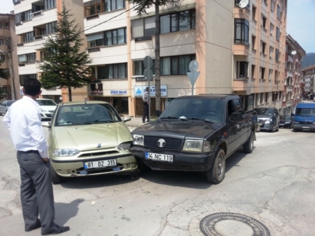 Bölgedeki ilk kaza önceki gün saat 17.30 sıralarında meydana geldi. Cemil B. sevk ve idaresindeki 14 BE 759 plakalı otomobil Mutlu Sokak’tan İsmetpaşa Caddesi’ne çıkmak isterken, Şemsi Ahmet Paşa Caddesi’ne ters yönden giriş yapan Murat B. sevk ve idaresindeki 14 KH 652 plakalı araçla çarpıştı. Tampon ve yan bölümlerinden hasar alan araçlardan sürücüler yara almadan kurtulmayı başardı.