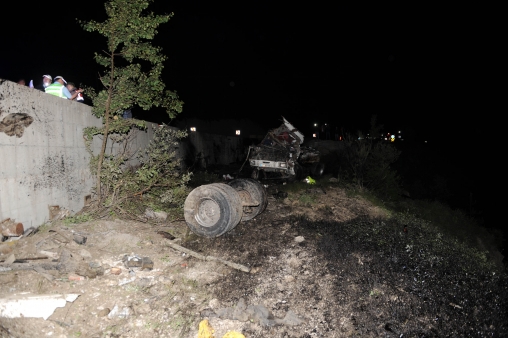 D-100 karayolu Bolu Dağı Bakacak mevkisinde, Selçuk Tatlı (49) idaresindeki 35 NJY 80 plakalı zift yüklü tanker, sürücüsünün direksiyon hakimiyetini kaybetmesi sonucu şarampole devrildi.