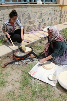 Emine Koyunoğlu tarafından yapılan Bazlama Ekmeklerine sacda yumurta kırılarak yenilmesinin yanı sıra Kızılcık Çorbası, Iza Bulguru Pilavı, Tosmanagara Helvası, Bazlama Ekmeği yapılarak afiyetle yenildi. Öğrenciler ilginç buldukları lezzetleri keyifle yediler. Ardından da Süt Makinesinden Süt Çekimi gösterilerek öğrencilere yapım aşamasını anlatıp süt ve kaymağı ayırdılar.
