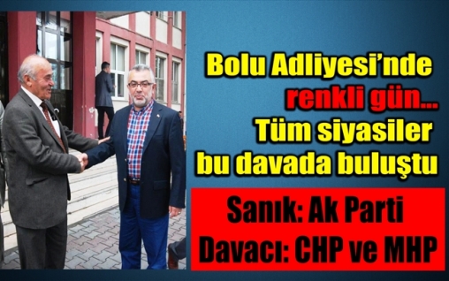 Dün Sulh Ceza Mahkemesi’nde görülen davaya sanık olarak Ak Parti İl Başkanı Ömer Sayın, Merkez İlçe Başkanı Adil Esen, Reklam şirketi sorumlusu Ayşe Bozacı ve reklam şirketi çalışanı Kutlu Küçüközcan katıldı. Davalı olarak ise CHP İl Başkanı Kazım Karsu ve MHP Merkez İlçe Başkanı Ruhi Doğanöz hazır bulundu. CHP Bolu Milletvekili Tanju Özcan ve CHP Merkez İlçe Başkanı Hüseyin Yıkılmaz ise davaya katılmadılar.
