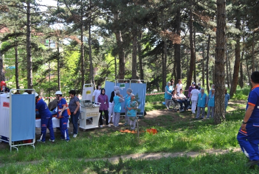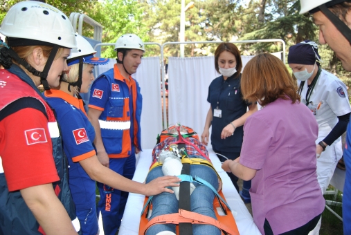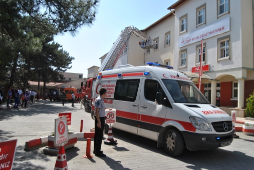 UMKE ekipleri tarafından Hastane Afet ve Tahliye Programı kapsamında gerçekleştirilen tatbikat gereği, 7 şiddetindeki depremin ardından hastanenin merkez ünitesinde hasar oluştu ve yangın çıktı.