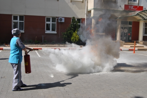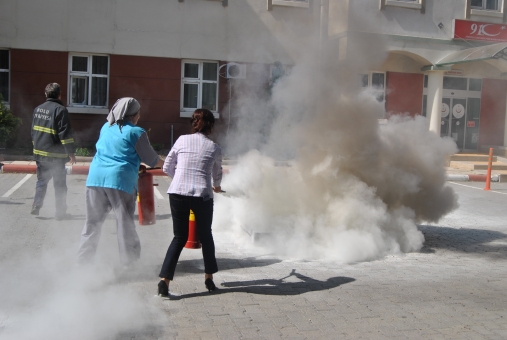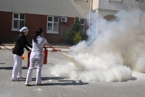 Tatbikat, hastane personelinin yangın tüpleri ile yangın müdahalesi gerçekleştirmeleriyle sona erdi.