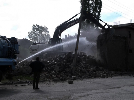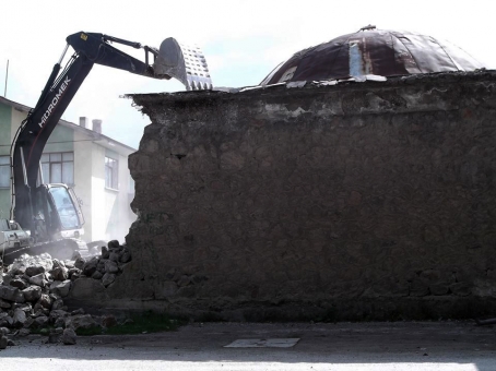 Belediye Başkanı Hasan Uzunoğlu, gazetecilere yaptığı açıklamada, Kadılar Mahallesi Fatih Sokak'taki hamamın yaklaşık bir saat süren çalışmanın ardından yıkıldığını belirtti.