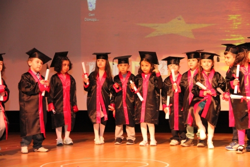 Gösterilerden sonra anaokulu mezuniyet kep ve cüppelerini giyen öğrencilere sınıf öğretmenleri diplomalarını takdim etti. “Yeni bir hayata merhaba, haydi kepler havaya” diye bağıran öğrenciler keplerini havaya atarak anaokulundan mezun oldular. Velilerin katılımının yoğun olduğu yıl sonu etkinliği gösterileri ayakta alkışlandı.