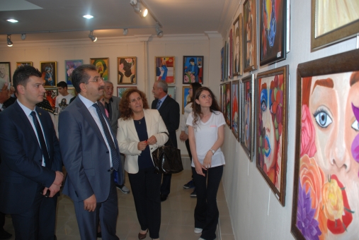 İl Kültür ve Turizm Müdürlüğü Sergi salonunda açılışı yapılan resim sergi açılışına Vali Ahmet Zahteroğulları ile eşi Mahire Zahteroğulları, Belediye Başkan Yardımcısı İhsan Ağcan, Cumhuriyet Başsavcısı Mehmet Yurtseven, İl Jandarma Komutanı Albay Cengiz Yıldız, daire ve okul müdürleri ile öğrenciler ve velileri katıldı.
