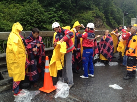 Gürcistan’ın Tiflis şehrinden gelen yolcu otobüsünün devrilmesi sonucu mağdur olan kazazedelere Kızılay Batı Karadeniz Bölge Müdürlüğü tarafından battaniye ve yağmurluk dağıtıldı. Bölgedeki yoğun yağış nedeniyle olay yerine gelen 112 Acil Sağlık ve itfaiye ekipleri zorluk çekerken, TEM otoyolunda biriken trafik, Abant kavşağından D-100 karayoluna aktarılmaya başlandı.