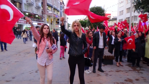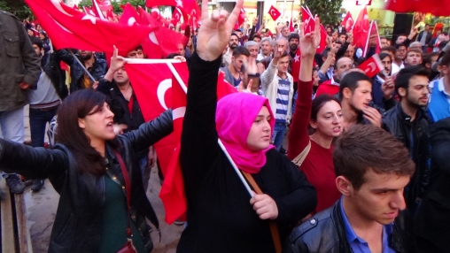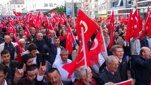 Bolu Ülkü Ocakları tarafından düzenlene yürüyüş Bolu Belediye Meydanı’ndan başladı. 2 bin kişinin katıldığı yürüyüşte 7’den 70’e herkes Türk bayraklarını alarak Diyarbakır Hava Kuvvetleri Komutanlığı'nın girişindeki Türk bayrağının indirilmesini protesto etti. Yürüyüşe MHP Bolu İl Başkanı Mehmet Aydın, Kamu Sen Bolu Şubesi, Türk Ocakları Bolu Şubesi üyeleri de destek verdi. Sloganlar atarak yürüyen gruba vatandaşlar da ev ve işyerlerinden Türk bayrağı sallayarak destek verdi. Yürüyüşe kadınların ilgisinin yoğun olduğu gözlendi. Grup, okunan dua ve İstiklal Marşı’nın ardından olaysız şekilde dağıldı.